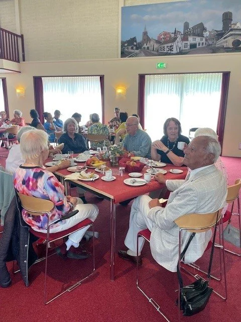 Ikzelf gelukkig niet maar laten we dit niet vergeten en hier weer even bij stil staan op 15 augustus bij de Indië herdenking. Al met al een interessante tocht en zeker heel leerzaam. We eindigen onze bus tour wederom bij het Salvatori en nuttigen daar nog even met zijn allen een drankje, gesponsord door het Bestuur van de SIOH en wordt er een groepsfoto gemaakt. Hierna gaat de reis weer richting Haarlem en is iedereen moe en sommigen doen dan ook even hun ogen dicht. Als we onderweg zijn krijgt iedereen nog een heerlijk stuk Roti kukus van Edmé, gemaakt door Grace. In Haarlem terug worden de zakken met gekochte chocolade uitgedeeld en kunnen we weer met recht terugkijken op een heerlijke dag. Op naar de volgende?